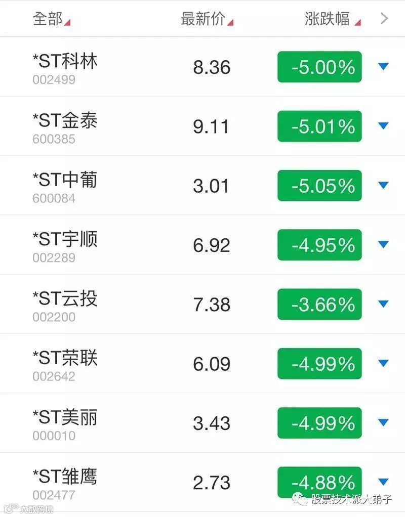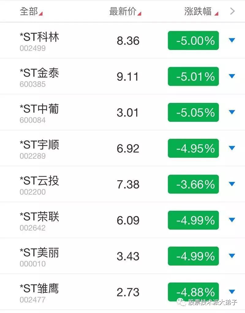“*ST”后股价难免要经历一番考验,除*ST云投之外,其他7只股票均是一字跌停。