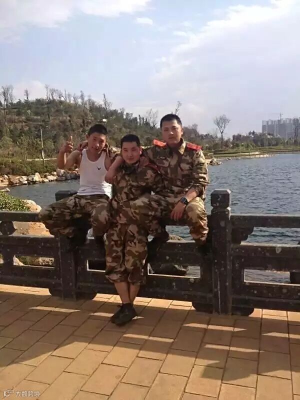20岁在部队当班长和战友合影的杨智红(右)
