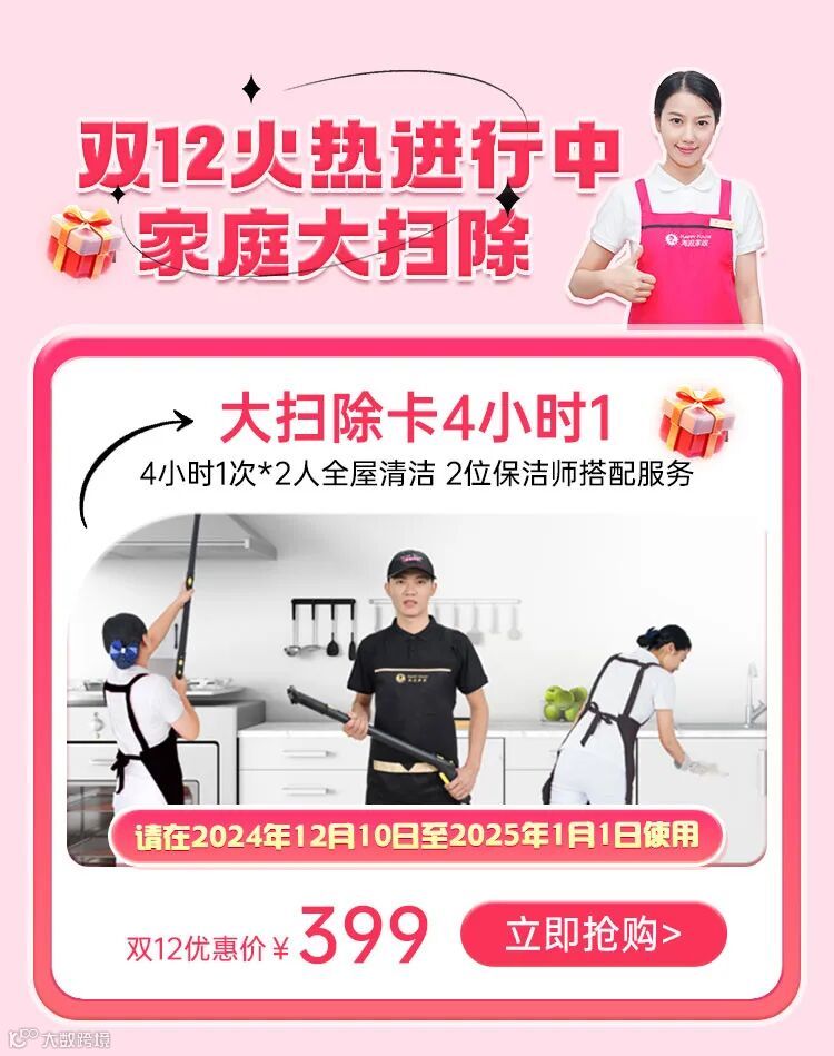 【双12回馈活动】年底无死角大扫除仅399元(限量抢约),包年3699元再送增值服务!