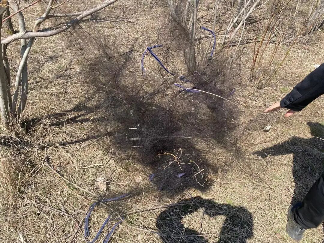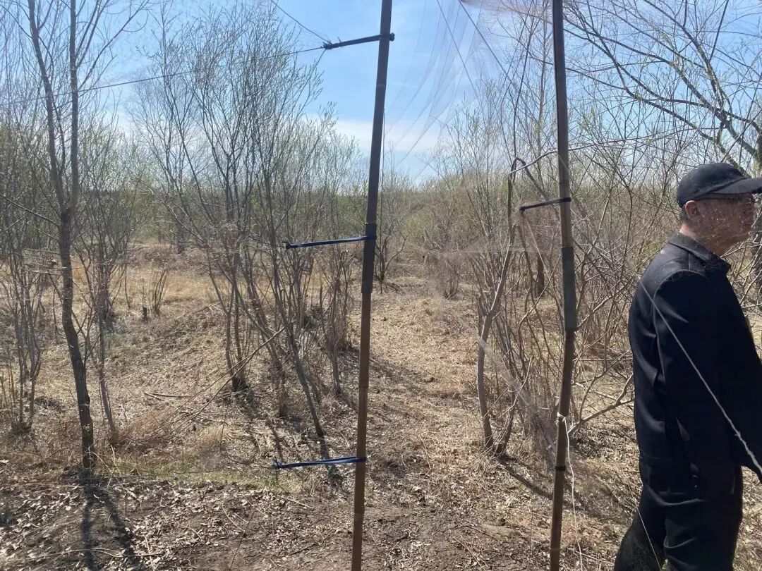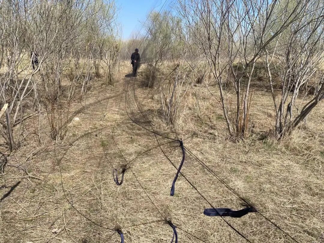 2022年4月29日,让候鸟飞伙伴黑龙江绥化市龙江护鸟营团队共6名志愿者再次展开巡护工作。在绥化市北林区张家油坊南侧的树林内,在树林与河道交接处,有人撒下了3片约60米的捕鸟网。