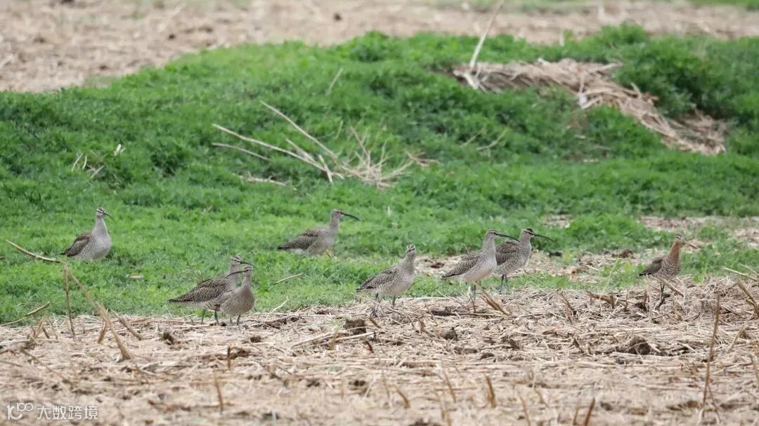 迁徙停歇降落于滩地上的中杓鹬和黑尾塍鹬