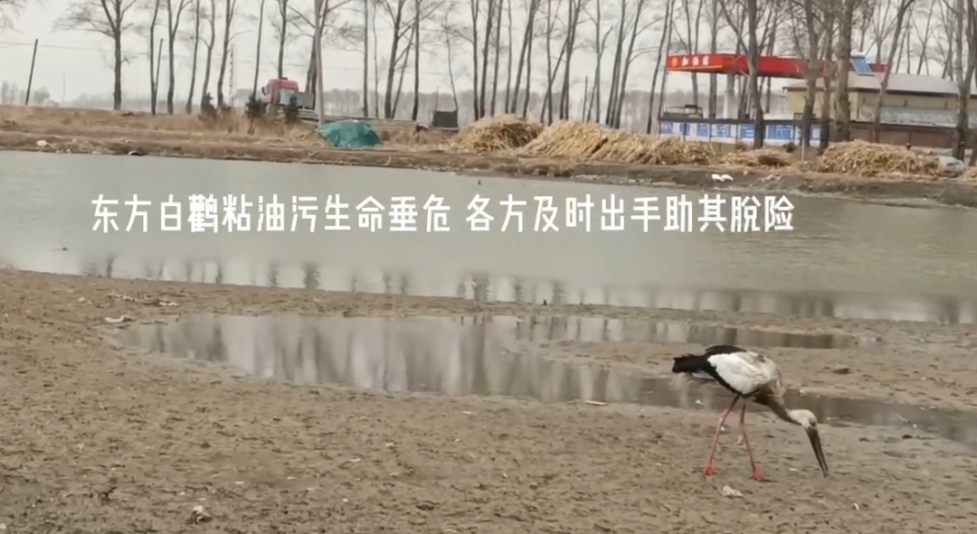 近日,一只国家一级保护动物东方白鹳身粘油污不能觅食、陷入险境,黑龙江省大庆市林甸县当地多方救助,使其成功脱险。