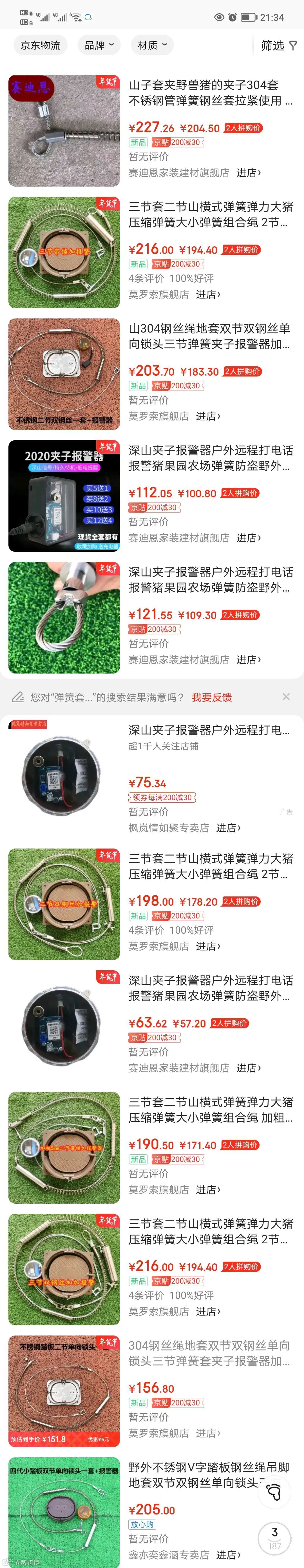 弹簧套、猎夹:和以前一样露骨的描述,“夹野兽的夹子”、“山鸡野兔”、“深山报警器”。以前排查清理的大好局面,彻底丢了。