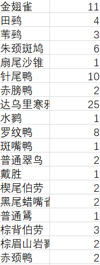 本次调查共记录野生鸟类50种(见下图表)。