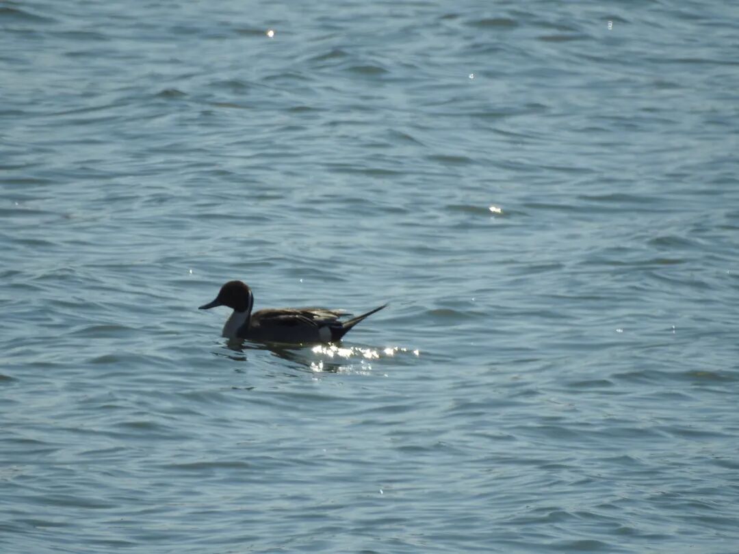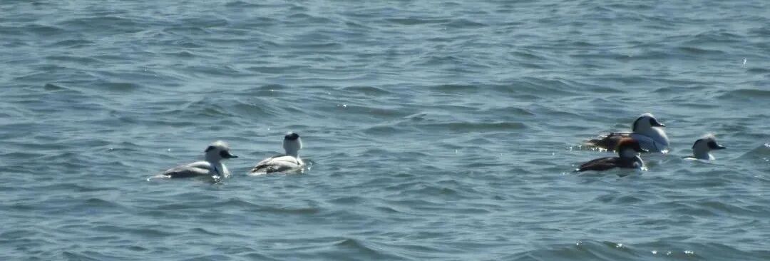 古人有诗春江水暖鸭先知~刚抵达岸边,首先看到的是一小群绿头鸭屁股朝上露出水面专心觅食,随水纹飘动上下浮沉。来到开阔的水面展开对水鸟的观测,鹊鸭、白秋沙鸭、普通秋沙鸭等鸭类大多混群活动。鹊鸭在安静的沙河水面上边游弋边不断觅食。而白秋沙鸭有着熊猫的配色,也被称为熊猫鸭(鸭墩墩),擅长潜水游泳。通过单筒可以较为清晰地观察到距离较远的鸟类,红头潜鸭作为濒危物种红色名录的易危物种,此次约有17只记录。凤头潜鸭混在红头潜鸭群中,共观测到2只。