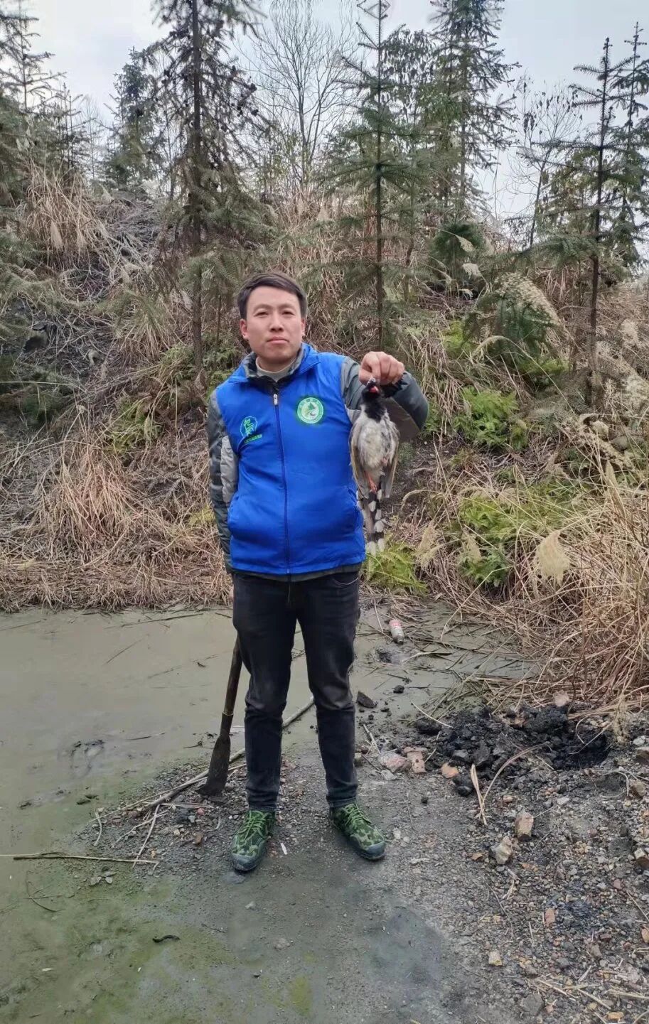 志愿者发现3张因冰冻原因深度隐藏尚未拆除的遗漏余网长约60米,立刻进行捣毁清除。此外无公害化处理死鸟12只,走访群众6户,现场张帖宣传标语22张。