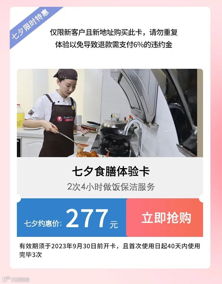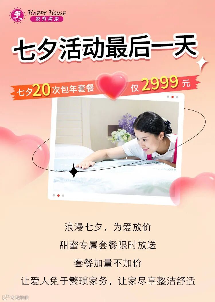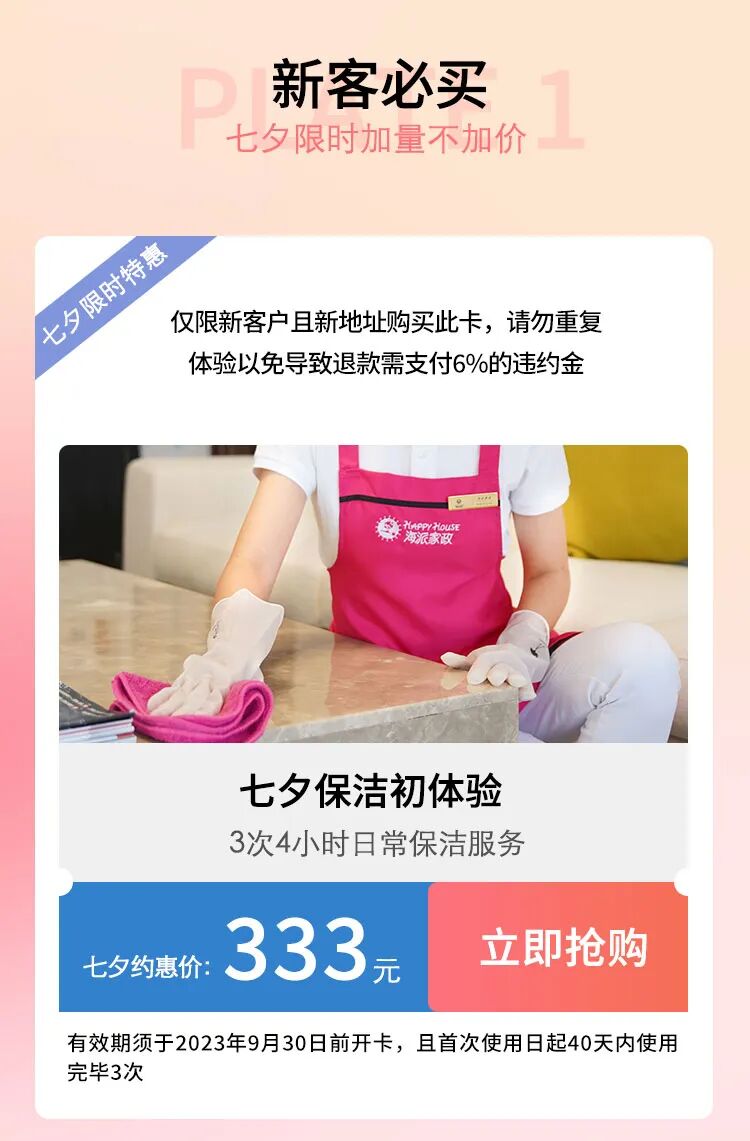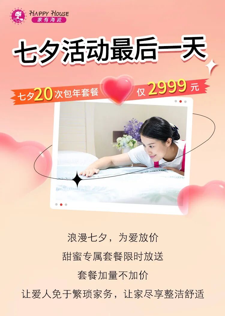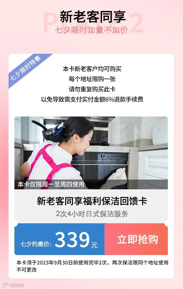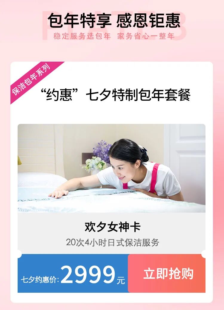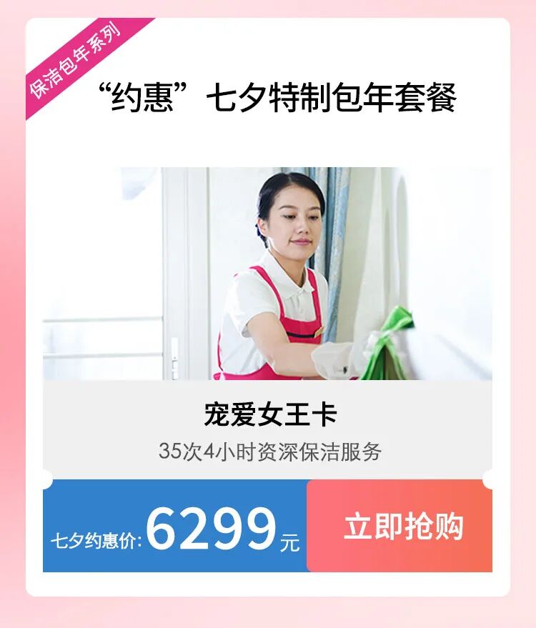 【七夕最后一天】包年20次仅2999元起,2次回馈卡339元,还有免费保洁~