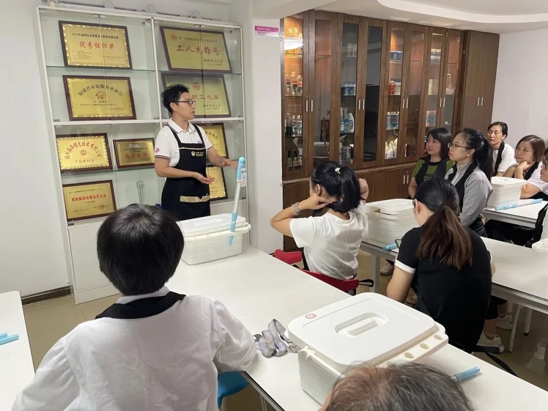 11月1日,由福建省家庭服务业工会联合会、福建省家庭服务业协会、福州市家庭服务业协会工会联合会、福州市家政服务业协会联合承办的“福建省家庭服务业高级技能培训班”第三期在海派家政由“全国最美家政人”高根兰授课。