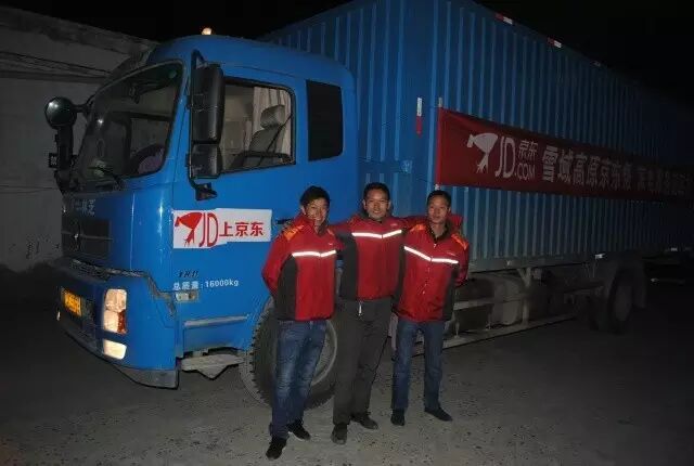 根据预测,将在13日或者14日能够送到拉杰的手中。由于拉萨到墨脱单程距离在750公里,且大部分路段限速在30公里以下,为了安全考虑,一辆车需配备2-3名司机,除了京东帮配送员李廷伟和藏族员工扎西外,合作物流公司员工黄世全也参加了此次配送,出发前3人合影纪念。