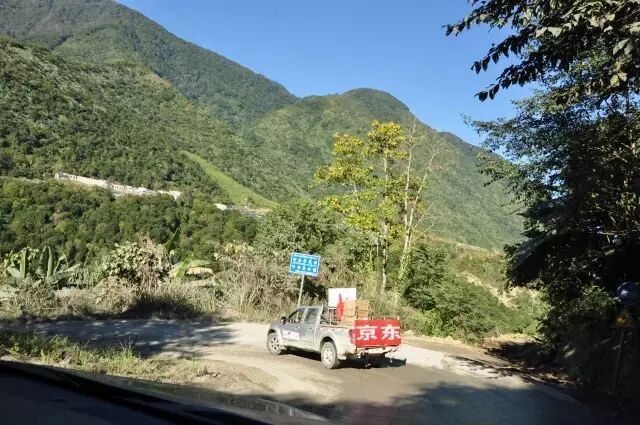 下午2:40,终于到达墨脱县城。京东帮快递员扎西给拉杰打了电话,拉杰家在墨脱县城附近的德兴乡,开车大概10分钟的路程,因为距离近,路况好,他们决定将冰箱送到拉杰家里去。