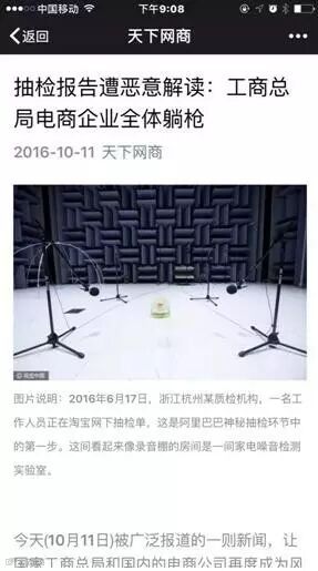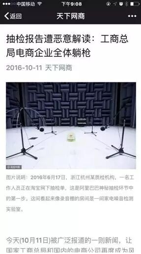 没错,就是这篇来自天下网商公众号的神文《双11前质检总局大抽检!谁扛起了"品质电商"大旗?》