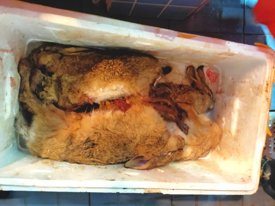 水产摊位发现数只野兔,腿部都有疑似被兽夹夹伤夹断的痕迹