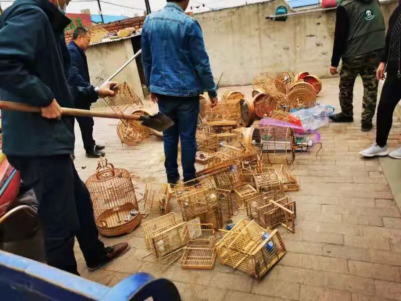 在山东省寿光市发现、举报大集非法贩卖野鸟,配合执法部门解救云雀、红协绣眼鸟、黄眉鹀、黄雀等鸟儿活体110余只,死体45只,销毁30多份打笼和捕鸟网。