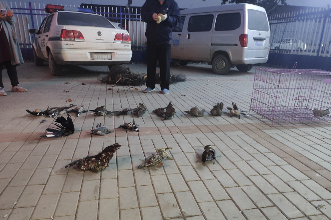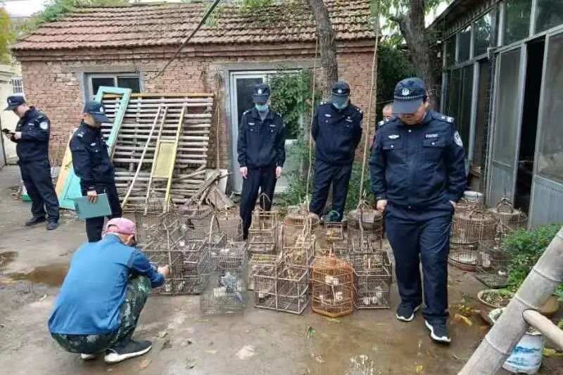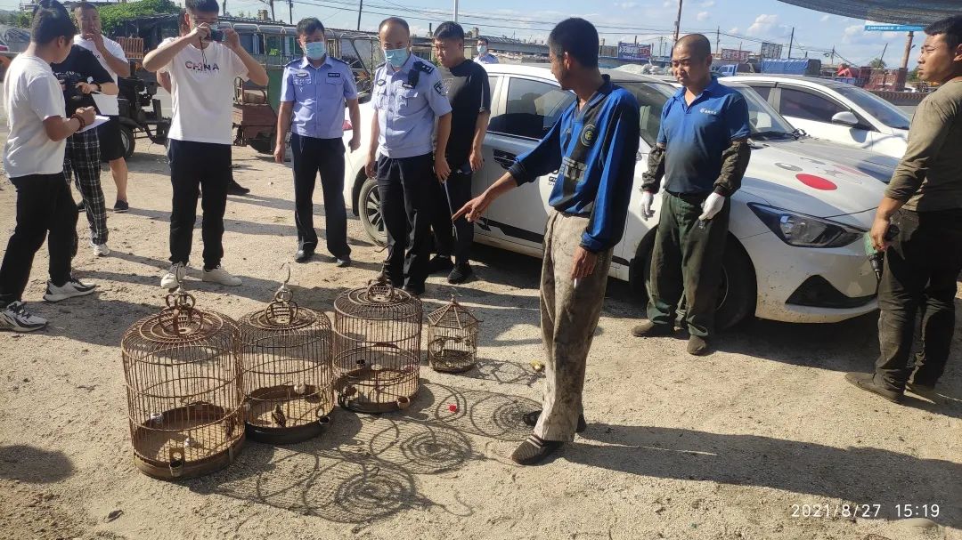 在河北沧州,发现鸟市非法贩卖野生鸟情况,举报后警方当场抓获贩卖者3个人,解救绣眼鸟10余只。另发现果园里架网3张,解救鹰隼3只,斑鸠1只,无害化处理国家“三有”保护鸟类死体13只,非法架网者已被警方立案调查处理。同日协助公安调查违法贩卖鸟类窝藏点,救助国家二级保护动物鹩哥2只,鸟贩子被公安执法部门立案调查处理。