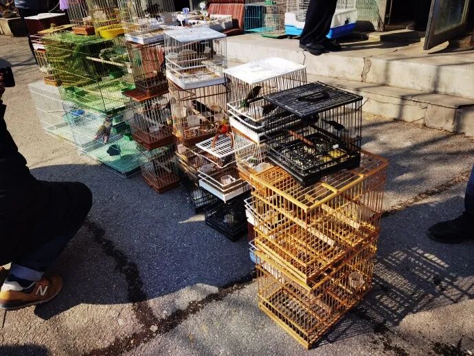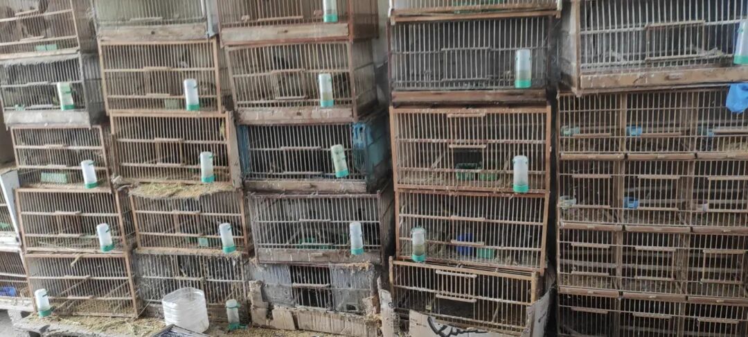 在福建厦门思明区溪岸路花鸟市场,懿丹野保特攻队志愿者,发现非法贩卖野生鸟现象,画眉、八哥、斑文鸟等300多只野生鸟被囚禁在笼子里。举报后相关部门及时到现场暂时控制现场并收缴野生鸟,目前案件已立案调查。