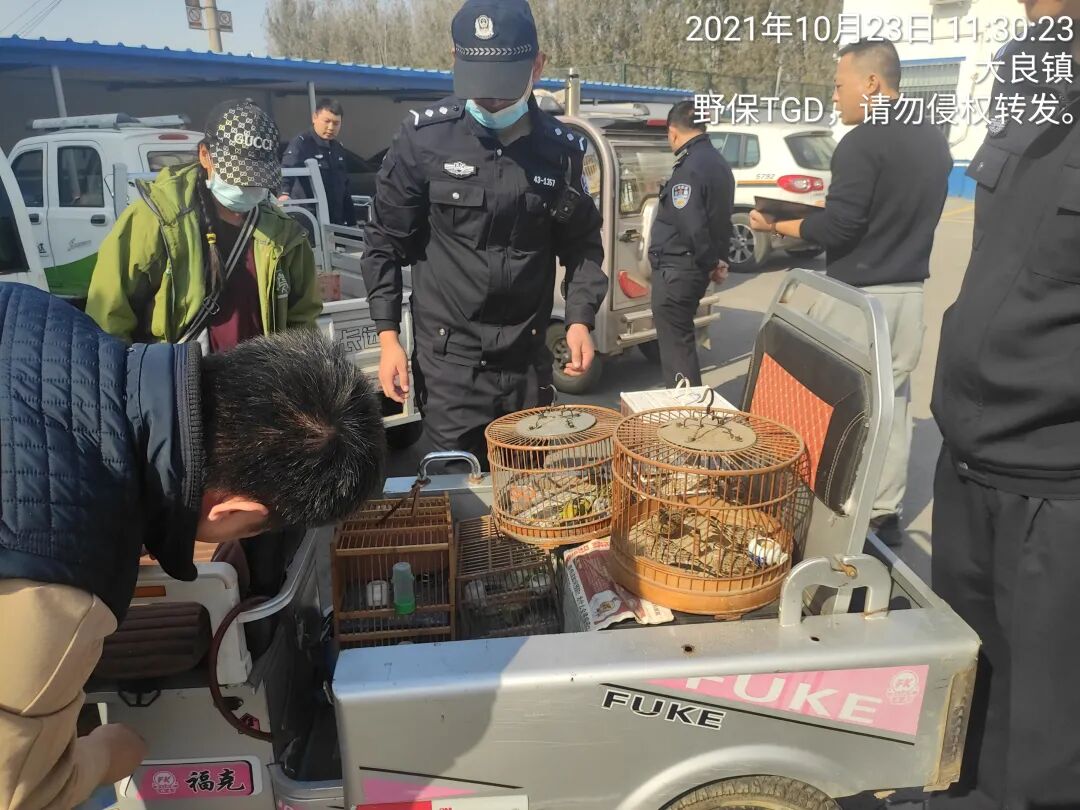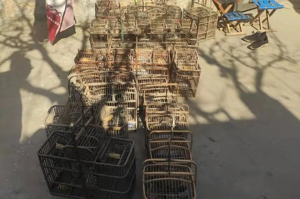 当天共解救野生候鸟70余只。发现、举报山东滨州大集贩卖野鸟,查获绣眼鸟和黄雀鸟20余只。在博兴县西秦村协助拆除2张鸟网和9个捕鸟笼,解救国家二级保护动物画眉、鹩哥等候鸟10只。在博兴县一农户家院里发现、举报、收缴40余只野生鸟,30多套捕鸟网具,20多个捕鸟打笼。
