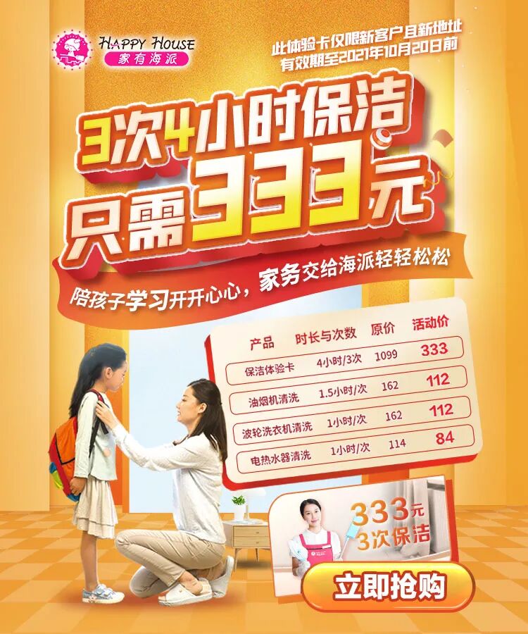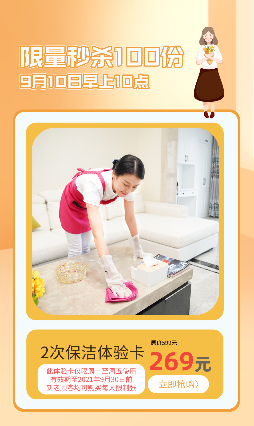 【保洁体验】低至27元/每小时,新老客户福利享不停