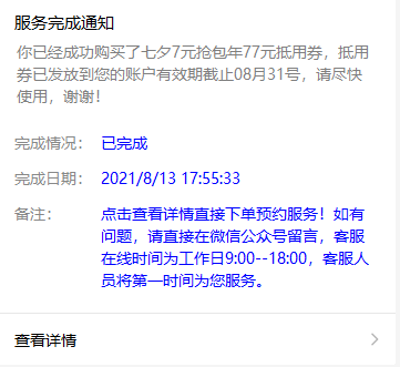 2.您将收到由海派家政微信公众号发送的购买成功提醒