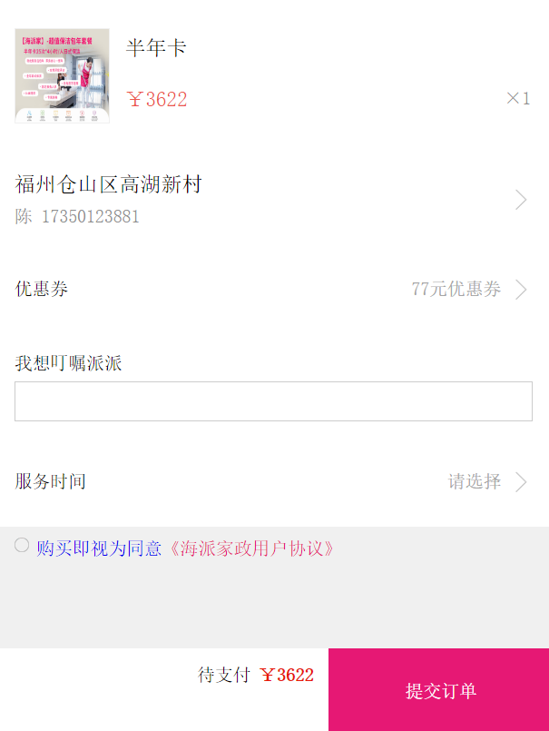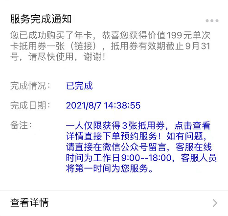 2.您将收到由海派家政微信公众号发送的购买成功提醒