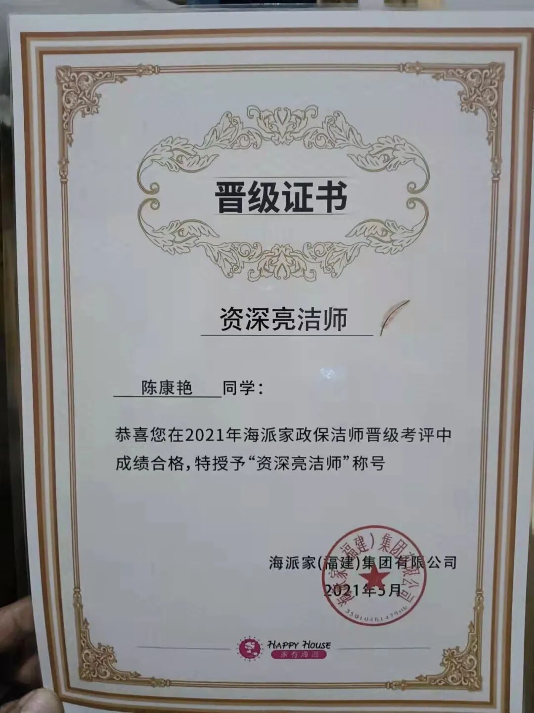 陈康艳,女,1989年生,广西省玉林市蓉县县底镇古长村人。现任福州海派信息技术有限公司资深保洁师、威武带单师。2020年10月加入海派,仅五个月时间就凭借优异能力当选优秀带单师,同年五月又通过公司内部考核成功晋级资深亮洁师。
