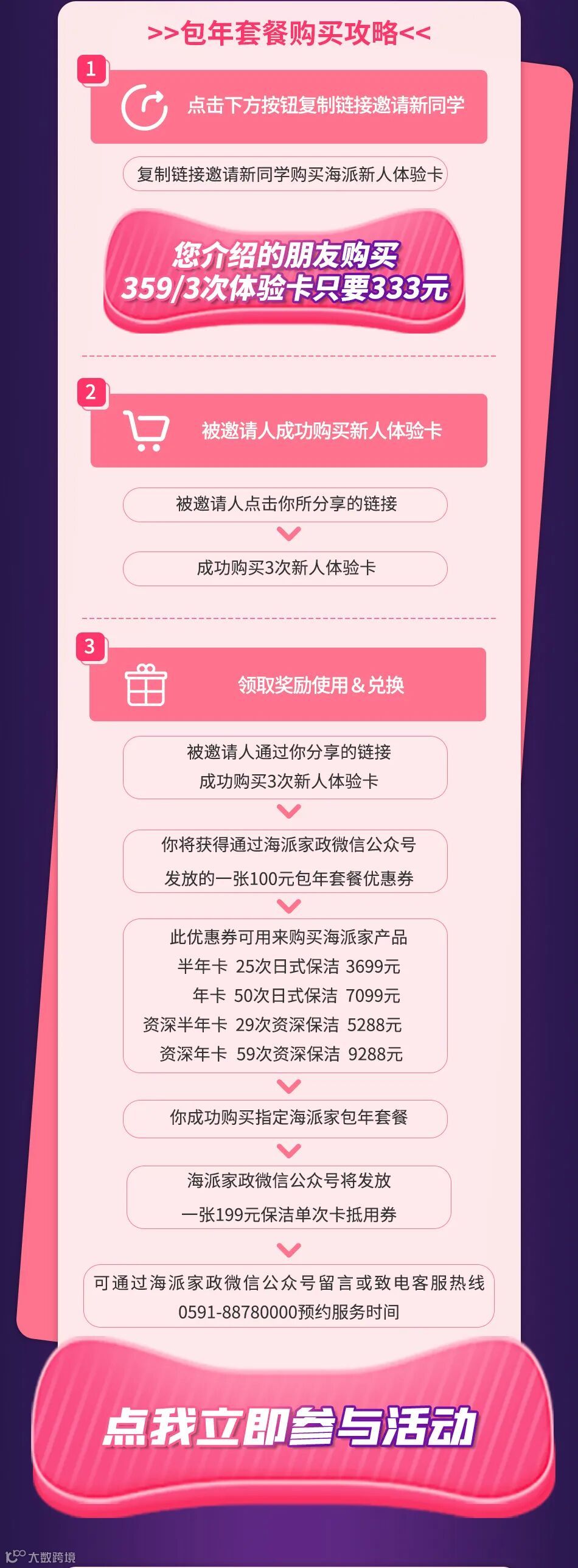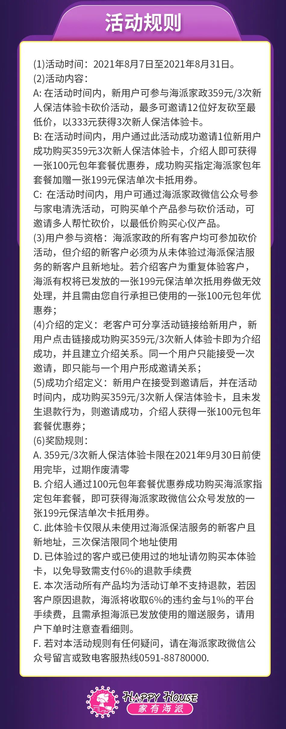 本次3次体验卡砍价活动仅限从未体验过海派保洁服务的新客户且新地址可购买此卡。