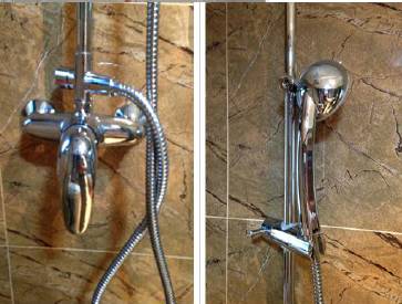 水龙头开关居中喷淋无印渍、无水痕喷淋头对墙摆放。