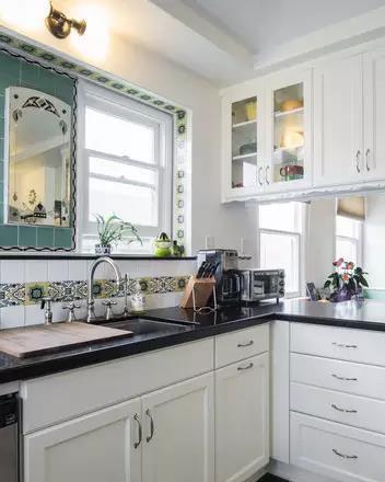 将炉灶附近的墙面贴上厨房专用锡箔纸,可以防止油污弄脏墙砖。且锡箔纸可更换,既方便又实用。