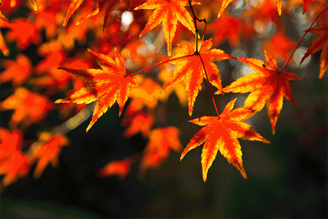枫遭霜侵后叶子火红,色彩鲜艳,灿如锦绣。古人曾有“霜叶红于二月花”的诗句。国内如苏州的天平山、南京的栖霞山,都以枫叶美景著称。夕阳西下,红叶参差交错,驰目远眺,仿佛珊瑚火海,十分壮观。