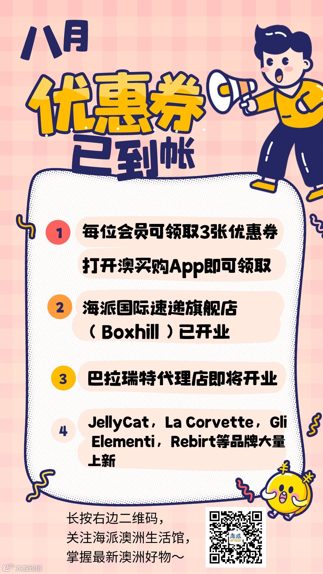 小伙伴们,打开澳买购App,速速领取八月最新优惠券!澳洲最新最IN的好物等你来哦~