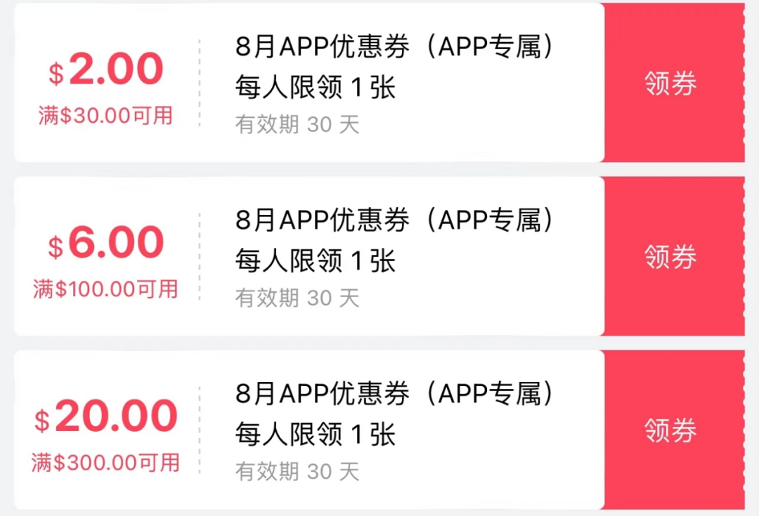 八月最新优惠券,终于上线啦