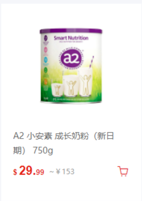 买A2 成人奶粉 赠A2蜂蜜奶粉400g(价值20澳币)