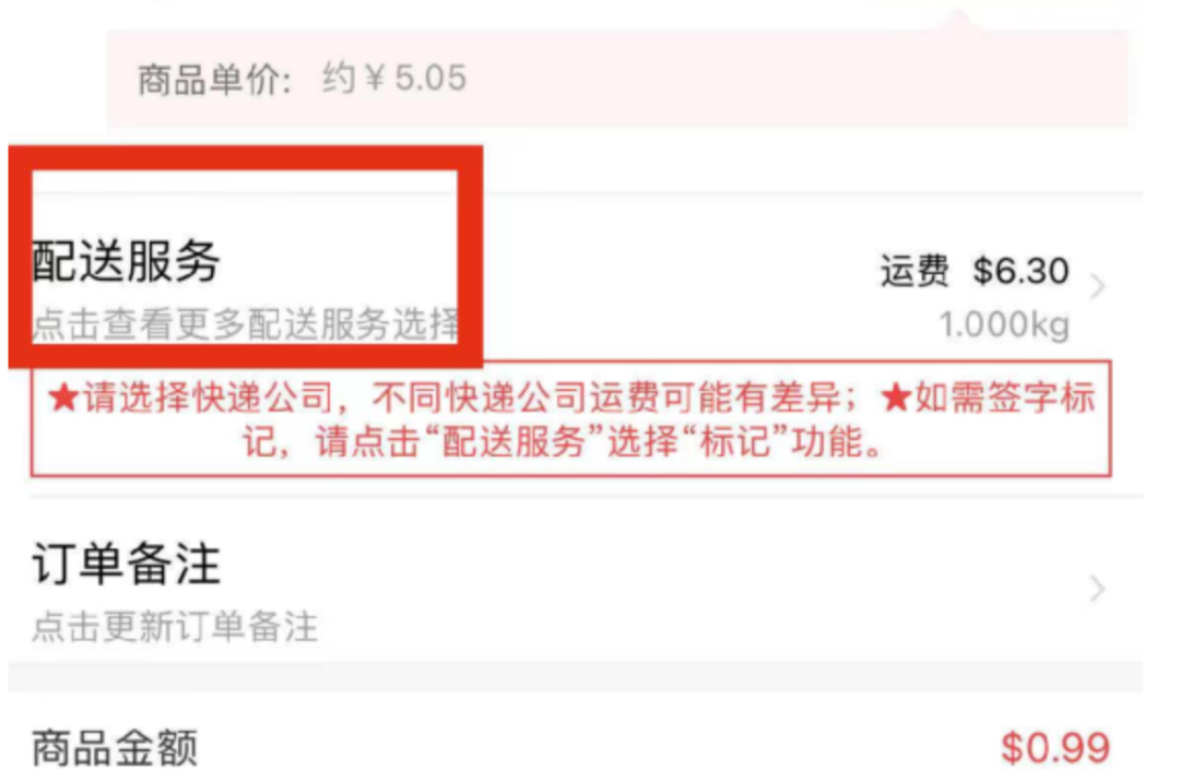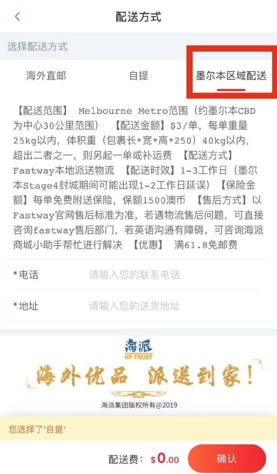 3.在结算页面,点击【配送服务】,并选择【墨尔本区域配送】