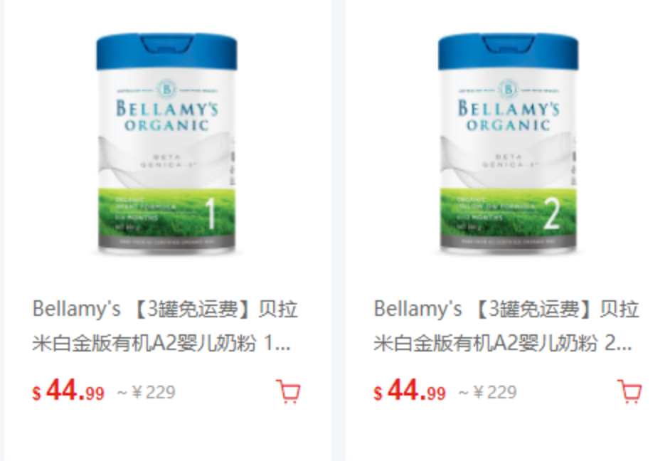 Bellamy's 贝拉米白金版有机A2婴儿奶粉 1段/2段