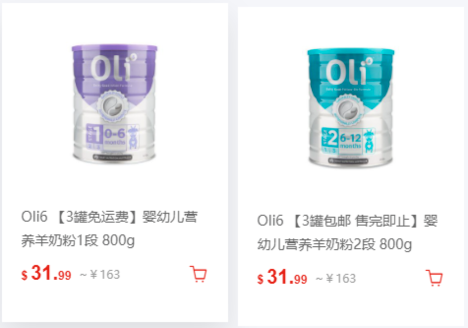 Oli6婴幼儿营养羊奶粉1/2段 800g