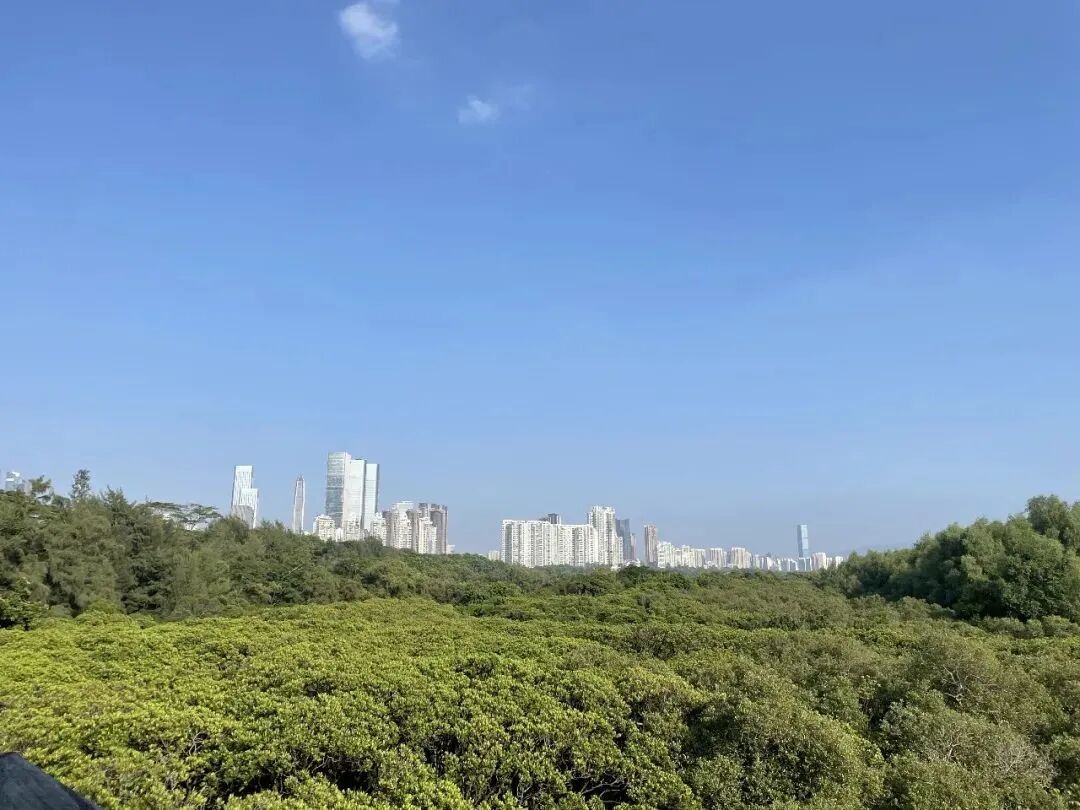 福田红树林生态公园可以远眺到深圳摩天高楼的剪影。