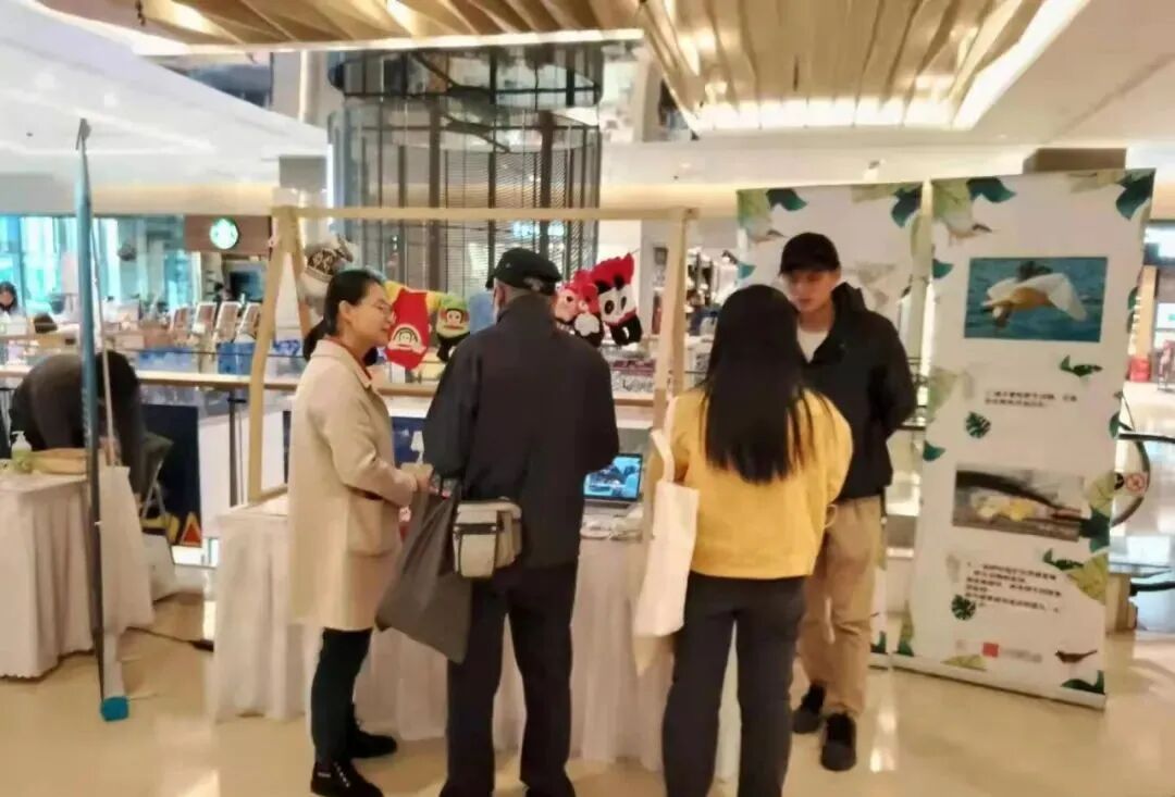 10月16日周六正好赶上寒潮降温,但位于北京朝阳嘉里中心的商场内人流量不减。我们被安排在商场一层的扶梯旁,位置人流量都很美好,来来往往的人看到让候鸟飞摊位介绍各种小鸟都会停下脚步,在好奇这到底是一个做什么。