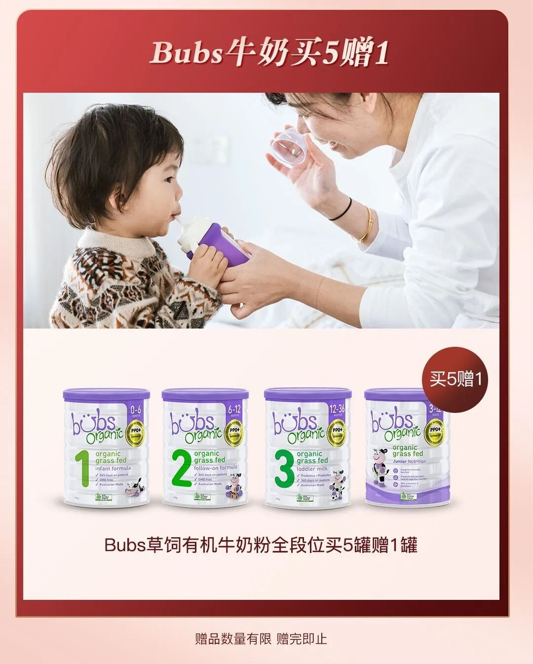 B. 买Bubs草饲有机全段位,买5罐赠一罐