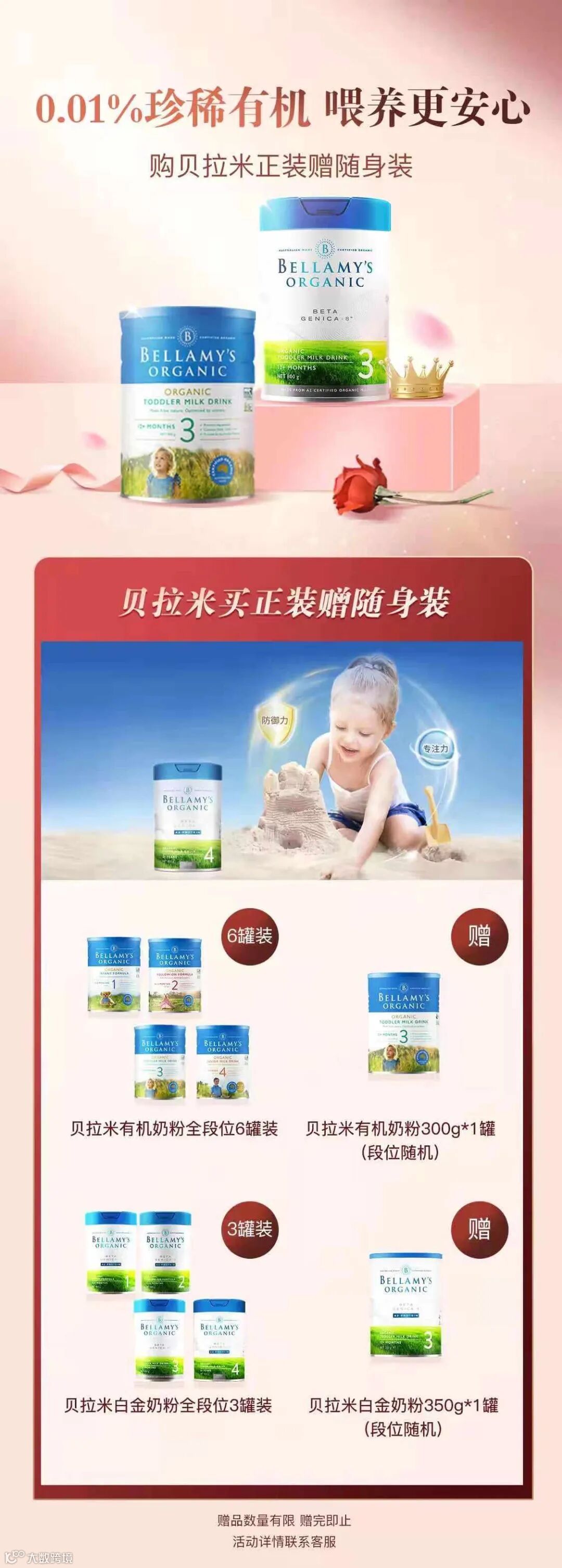 A. 买贝拉米有机奶粉6罐,赠贝拉米有机奶粉300克(段数随机,如需特定段数,请联系客服)