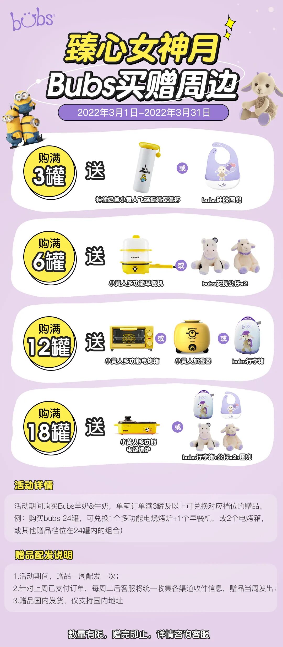 A. 买Bubs全系列奶粉,赠对应小黄人主题赠品