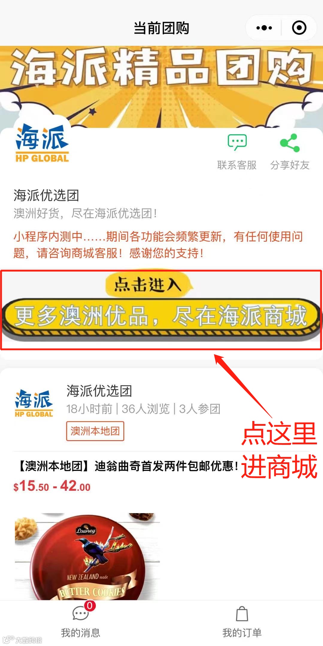 同时,在小程序首页,也可以跳转进入海派商城!1500多种优质澳洲商品任你选购!