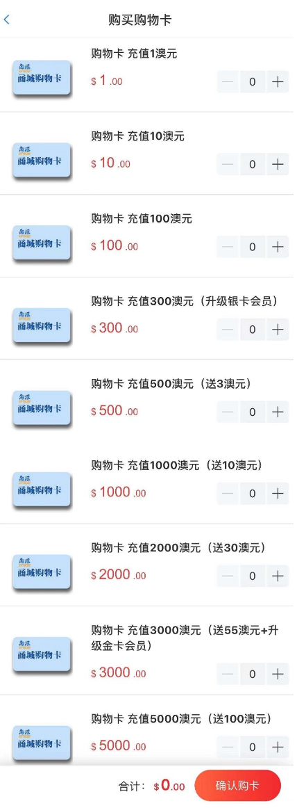 *小贴士:如果购买订单金额大于500澳元,建议先购买购物卡储值,再进行支付哦!