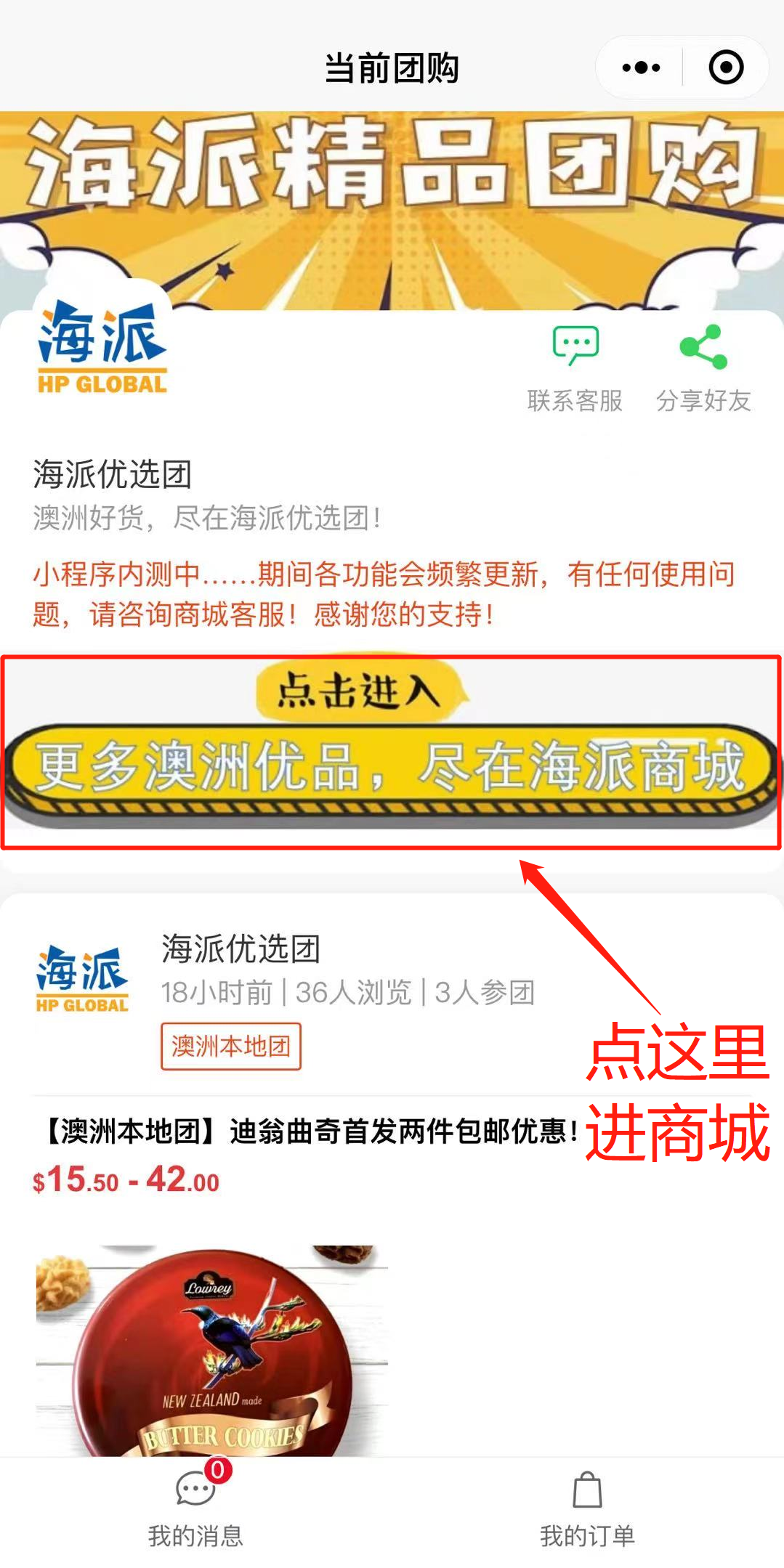 同时,在小程序首页,也可以跳转进入海派商城!1500多种优质澳洲商品任你选购!