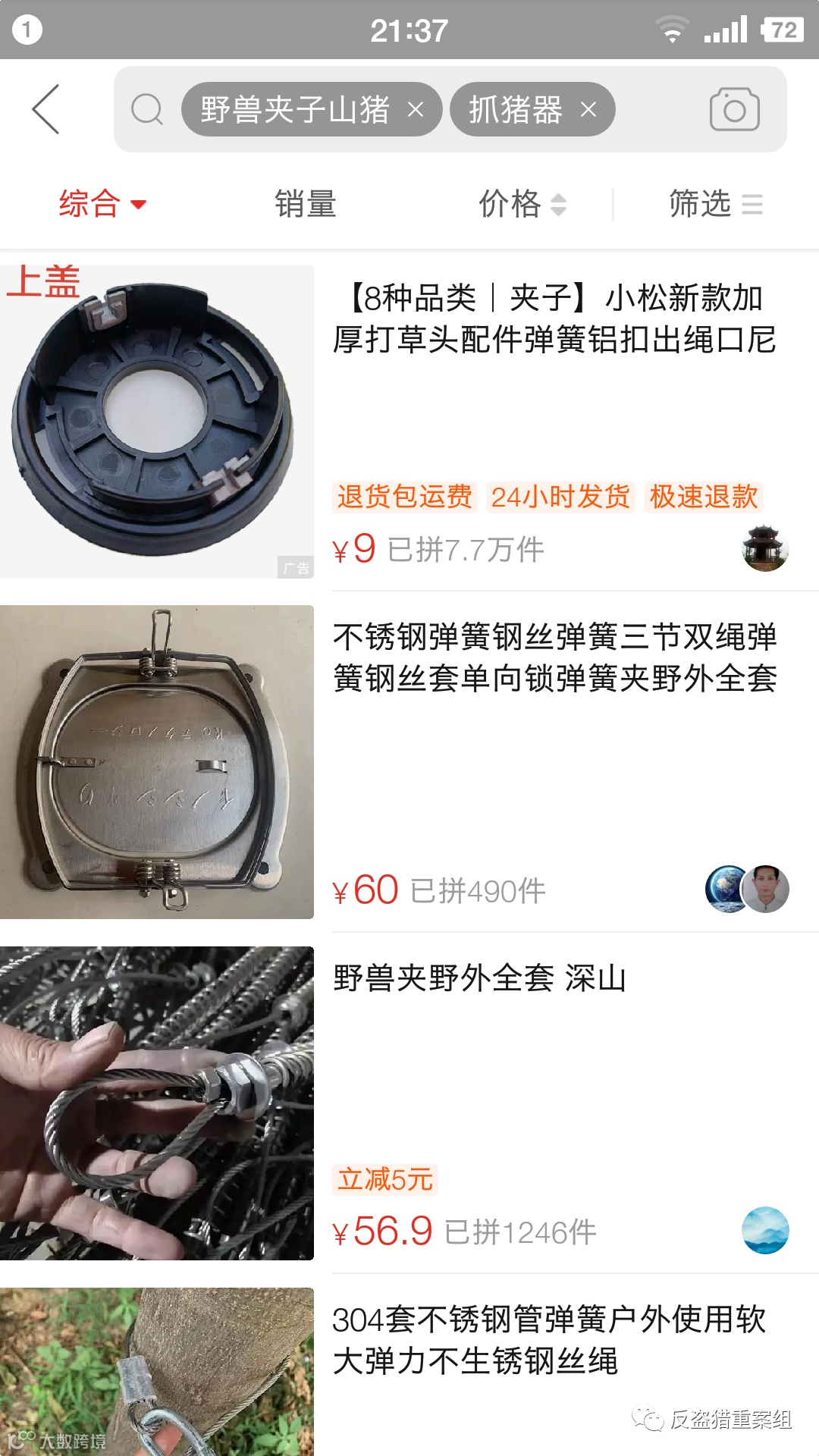 关于拼多多为售卖野生动物猎捕工具的商家提供交易服务,上海长宁区市场监督管理部门称自己无法认定平台在售的是不是法律“禁止使用的猎捕工具”,因此无法查处拼多多。为此,我们正在整理相关信息,准备提供给市场管理部门,算是对他们的一个协助吧。简单发个文,让大伙也都看看。
