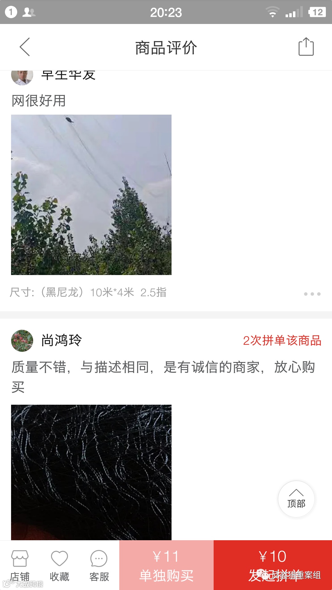 捕鸟网以黑色为主,但凡提到带兜、深兜、丝网、雾网等字眼的,基本可以确定就是捕鸟网。如今确实不少商家都打着“防鸟”的名头卖捕鸟网,但图片和商品介绍不会骗人,评论区各个买家晒出的图片甚至猎获物更不会骗人。而真正的防鸟网实际上颜色鲜艳(白色、蓝色等),不带网兜,架起来是个平面。