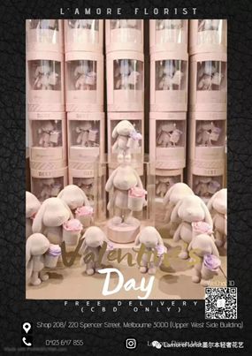 1.取花方式:到店自提或配送,配送时间为9:00am至晚上8:30pm,墨尔本CBD地区周围15公里免运费,其它地区根据具体地址收取一定的配送费(详情咨询客服)