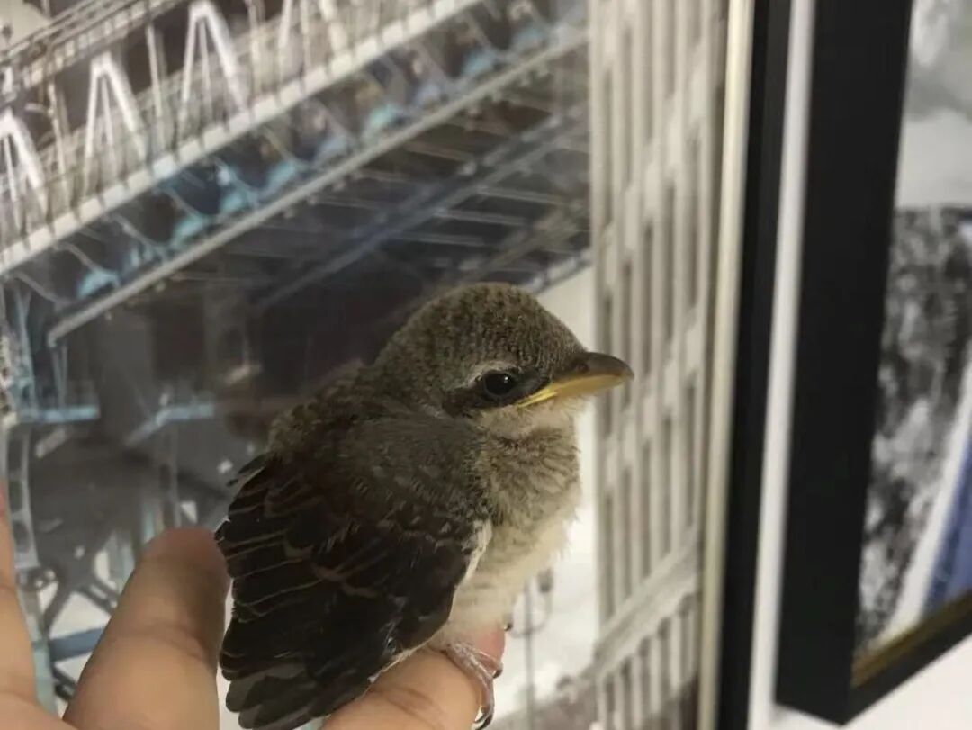 【大美瑜】求助到让候鸟飞鸟医部的志愿者和鸟医军老师。可能是由于受到惊吓,小鸟在外面的时候一直闭着眼睛,身体发抖。等【大美瑜】带牠回家后,可能是感觉到终于安全了,状态变好了,睁开了眼睛,还会一直叫唤扑腾了。网友【大美瑜】没啥经验,给小鸟准备了小米吃,后来咨询军老师才知道,原来这只是小红尾伯劳,是要喂生牛肉丝的,怪不得对于小米牠是拒绝的。