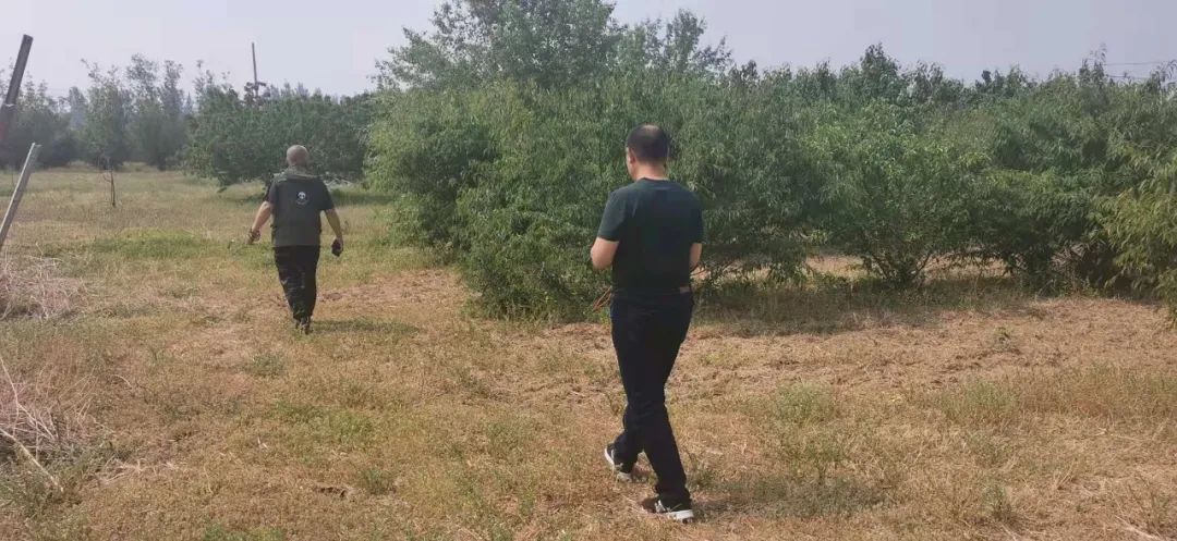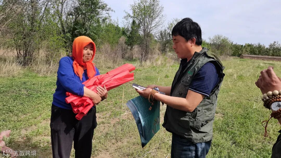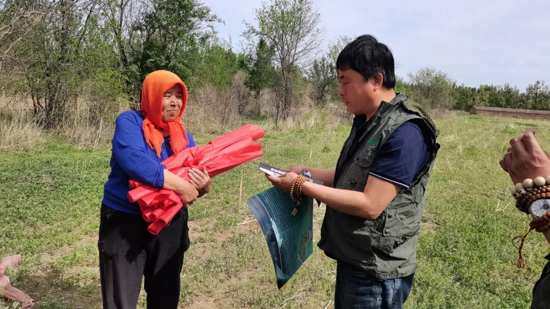 志愿者来到武清区、北辰区葡萄地巡护,给葡萄种植户发放驱鸟带,并宣传普法。