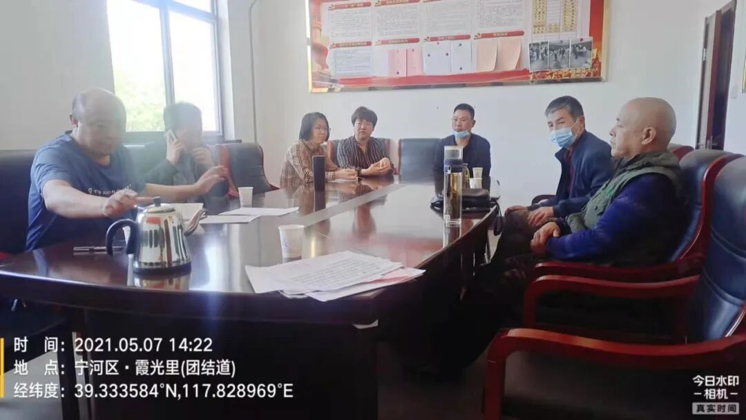 天津市宁河区河长制事务中心领导和职员与野生动物保护志愿者一起在事务中心会议室召开水生态环境治理座谈会,商讨如何有效治理非法捕捞行为。
