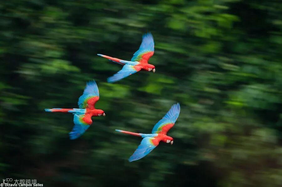 野外的金刚鹦鹉在飞行,来源:网络