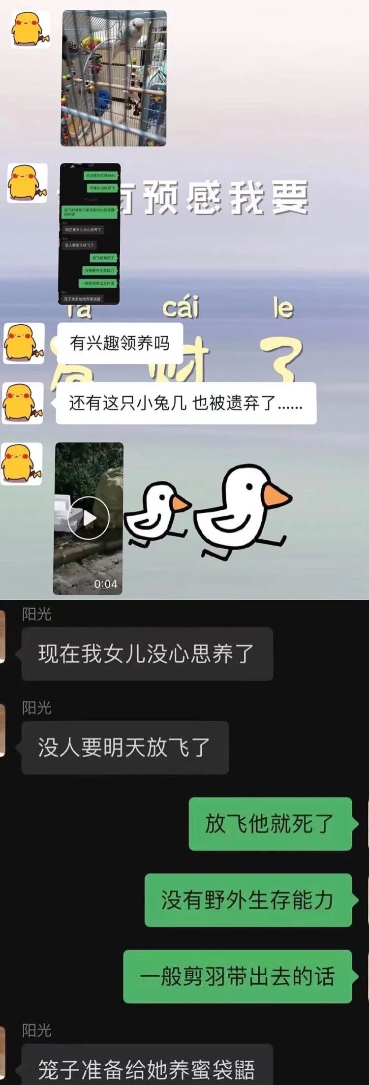 不久前的紧急求助,上海半夜11:30遗弃鹦鹉和兔子,该主人表示:女儿突然不想养了。来源:微博